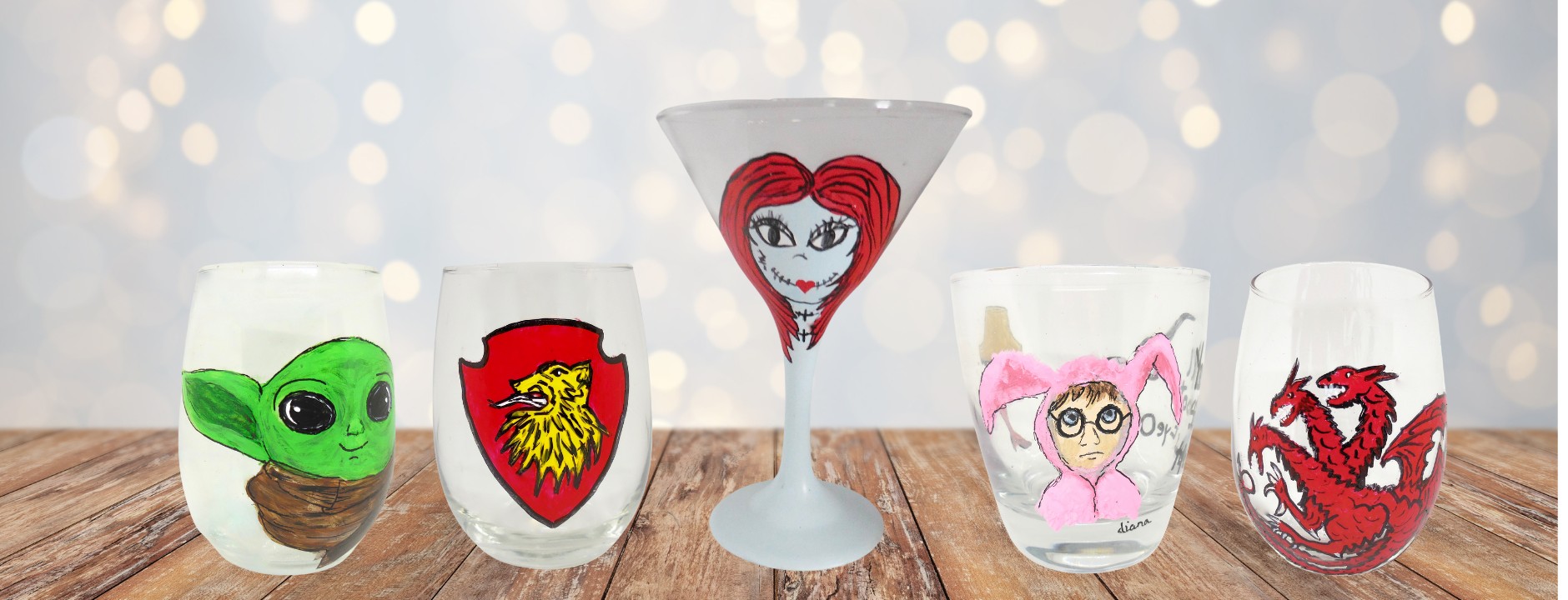 Step into a world of iconic characters and beloved stories with the Fandom Favorites Collection. This unique series features an array of hand-painted glassware, ceramic tiles, and other decorative pieces that bring to life some of the most memorable characters from fan-favorite franchises like Baby Yoda from Star Wars, Game of Thrones house sigils, whimsical figures from The Nightmare Before Christmas, and many more. Each item is meticulously crafted to capture the spirit and personality of these legendary tales, perfect for fans who want to add a touch of their favorite worlds to their home decor. Celebrate your love for these timeless stories with our vibrant and enchanting collection!