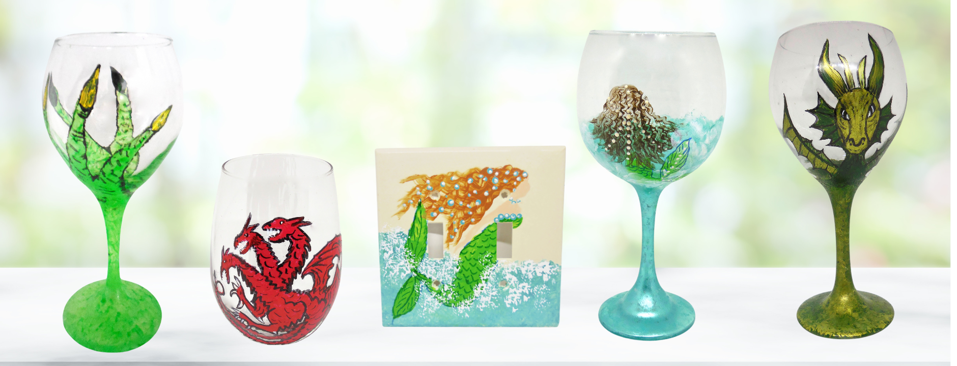Step into a world of wonder with the "Fantasy Creatures Collection," a magical assortment of glassware, ceramic tiles, and home decor inspired by mythical creatures and fantastical lands. From the grace of mermaids dancing in ocean waves to the fiery majesty of dragons guarding their treasure, each piece is hand-painted to capture the essence of these timeless legends. Perfect for dreamers, adventurers, and lovers of all things mystical, this collection will bring a touch of enchantment to your home. Explore the magic and let your imagination soar with every sip, glance, and touch.