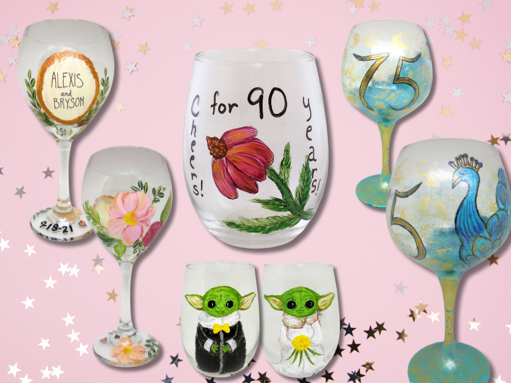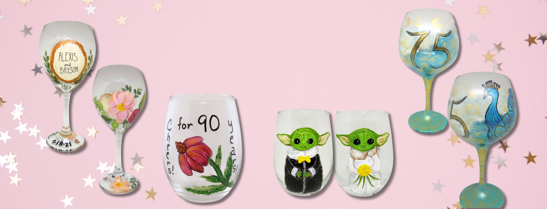 Make your special occasions truly memorable with our custom-painted pieces, tailored to reflect the unique details of your celebrations. From elegant wedding glasses designed to match your invitations, to personalized anniversary and birthday items that capture the essence of your milestone moments, each piece is crafted with attention to detail and your personal touch. Celebrate your love, achievements, and milestones with bespoke glassware and ornaments that perfectly complement your special day and create lasting memories.