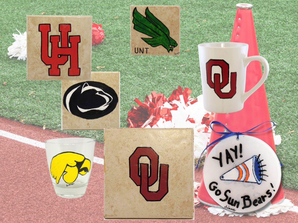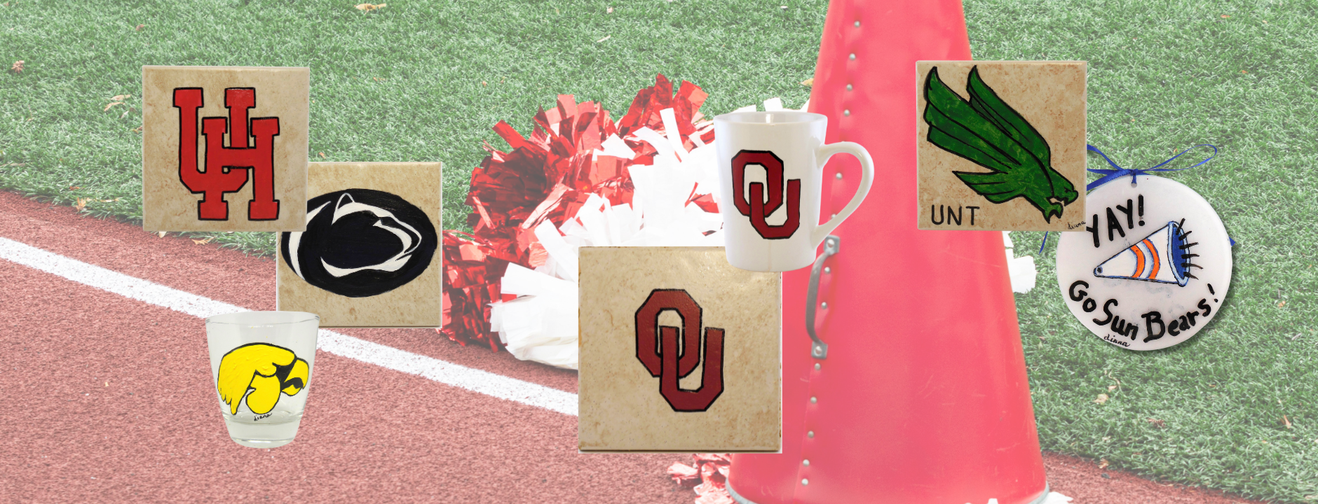 Showcase your team spirit with our custom-painted pieces featuring college logos, team mascots, and high school alma maters. Perfect for game days, reunions, or as a personalized gift, these custom creations let you honor your educational and athletic affiliations in style. Celebrate your school pride with unique, hand-painted designs that turn your favorite logos and symbols into cherished keepsakes.