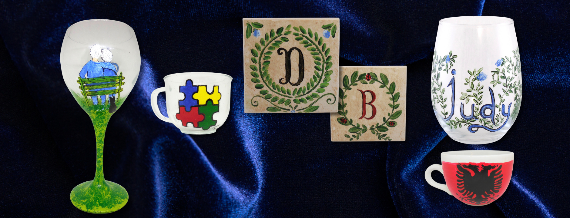 Celebrate what matters most to you with our personalized, hand-painted items for any occasion. From flags representing your heritage to custom designs for your favorite organizations, or even elegantly monogrammed pieces with your initials, we create unique art that speaks to your passions. Perfect for gifts, events, or personal keepsakes, each piece is crafted to reflect your style, story, and spirit. Whether it's a personal milestone, a community celebration, or just a special piece for yourself, our personalized creations bring your vision to life in a way that's both meaningful and memorable.