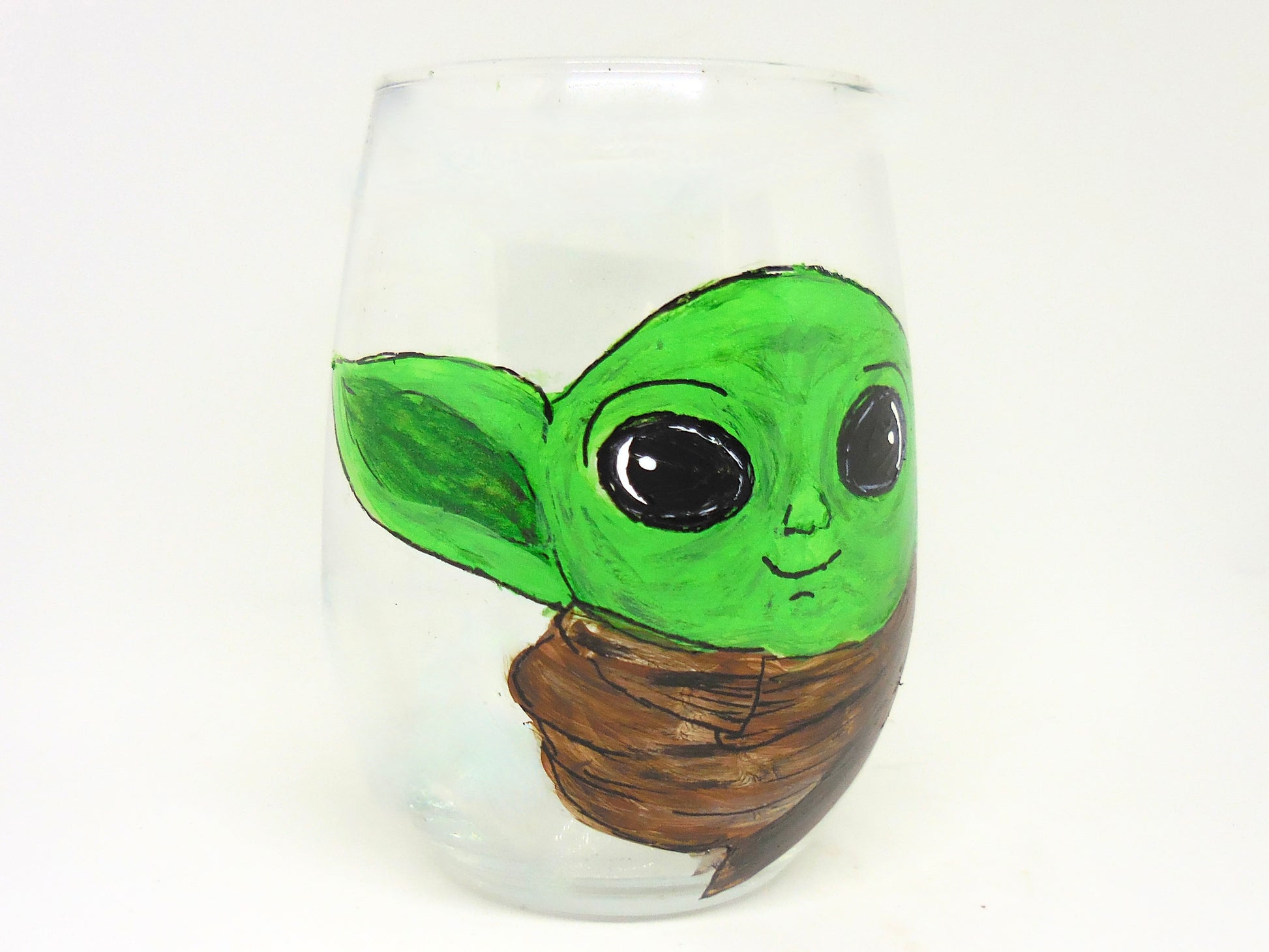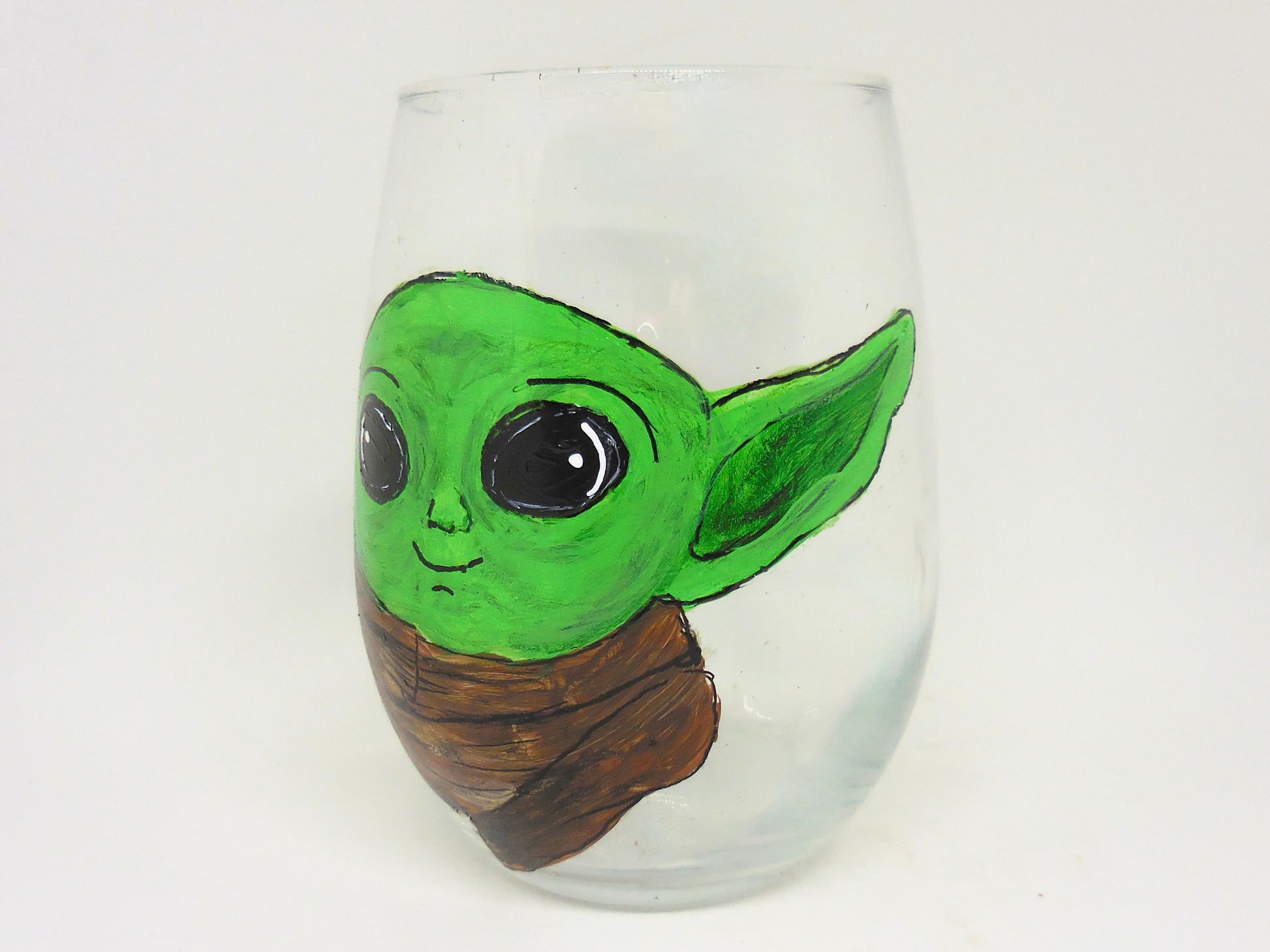Delight in every sip with our Baby Yoda Stemless Wine Glass. Hand-painted with the beloved Baby Yoda from The Mandalorian, this glass brings a touch of intergalactic charm to your wine experience. Perfect for fans of the series or as a fun gift, it combines playful design with practical elegance, making each drink a little more magical.