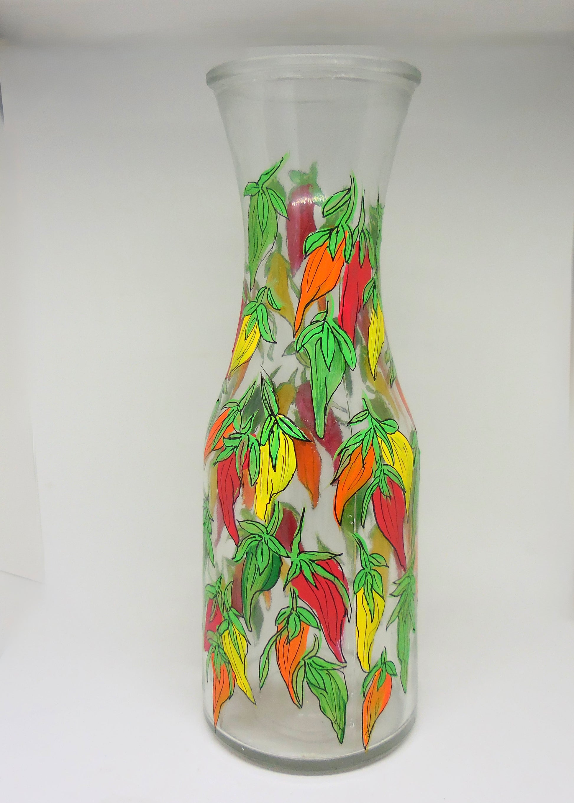Turn up the heat on your table décor with this vibrant, hand-painted carafe featuring bold red, yellow, and orange chili peppers. Whether you're serving iced tea, margaritas, or agua fresca, this 32 oz carafe brings a festive flair to every pour.