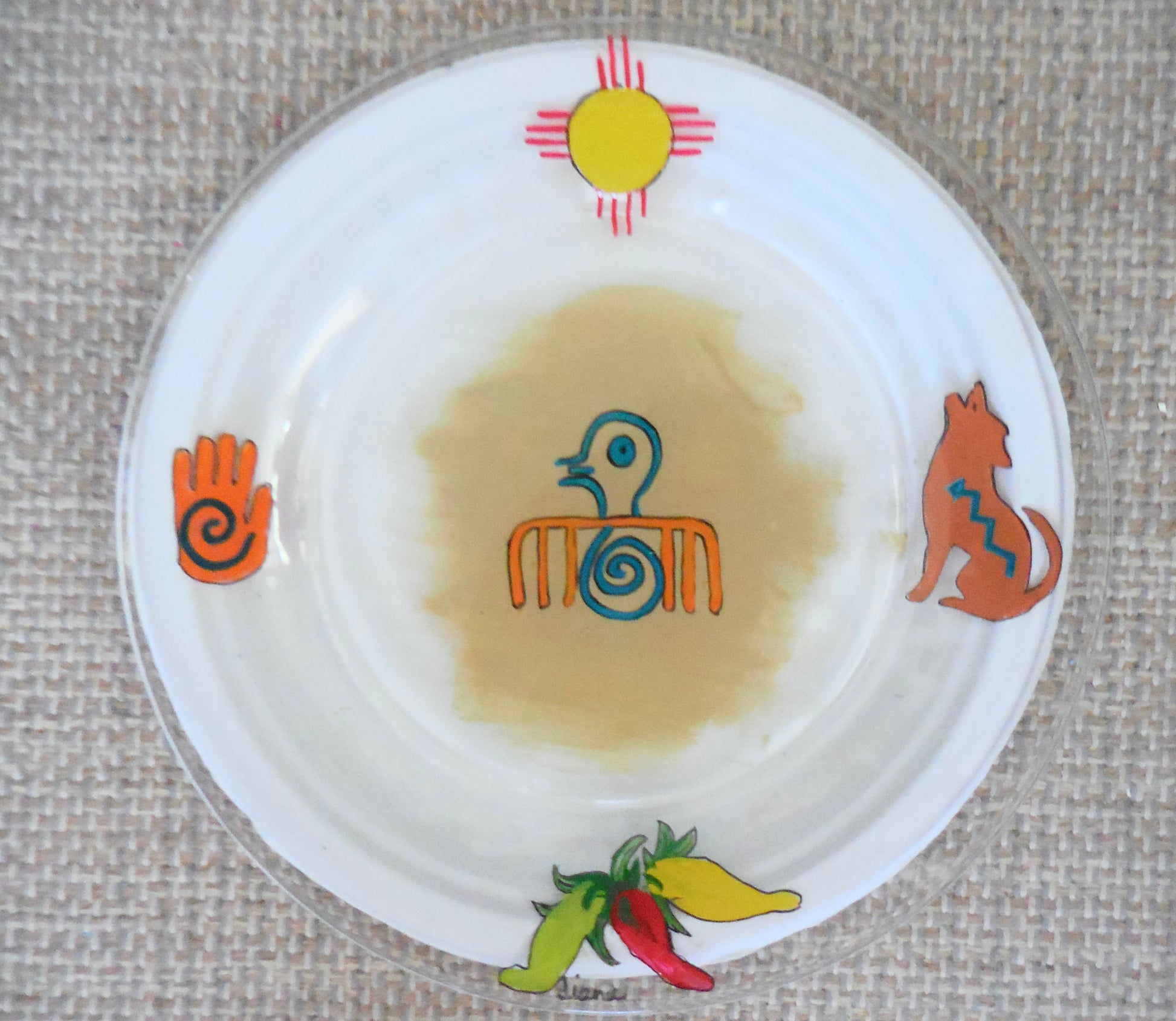 Add a touch of Southwestern flair to your table with our Glass Plate featuring Sun and Eagle Designs. Hand-painted with vibrant depictions of the sun, a majestic eagle, and resilient cacti, this plate captures the essence of the desert landscape. Perfect for serving meals or as a decorative accent, it combines cultural artistry with practical elegance for a unique dining experience.