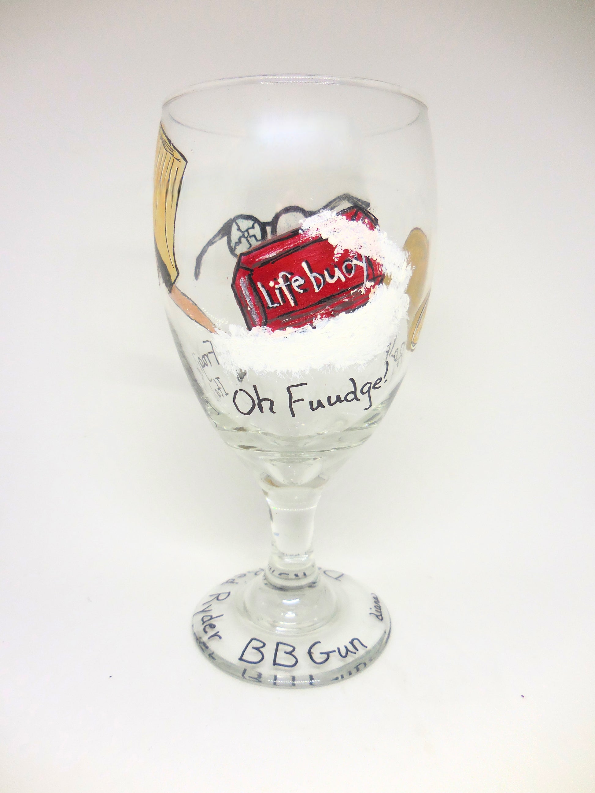 Capture the humor of a holiday classic with our Goblet featuring a Lifebuoy and "Oh Fudge!" Design from A Christmas Story. Hand-painted with the iconic lifebuoy and Ralphie's infamous exclamation, this goblet adds a playful, nostalgic touch to your drinkware collection. Perfect for fans of the film or as a unique holiday gift, it brings a bit of festive fun and charm to every sip.