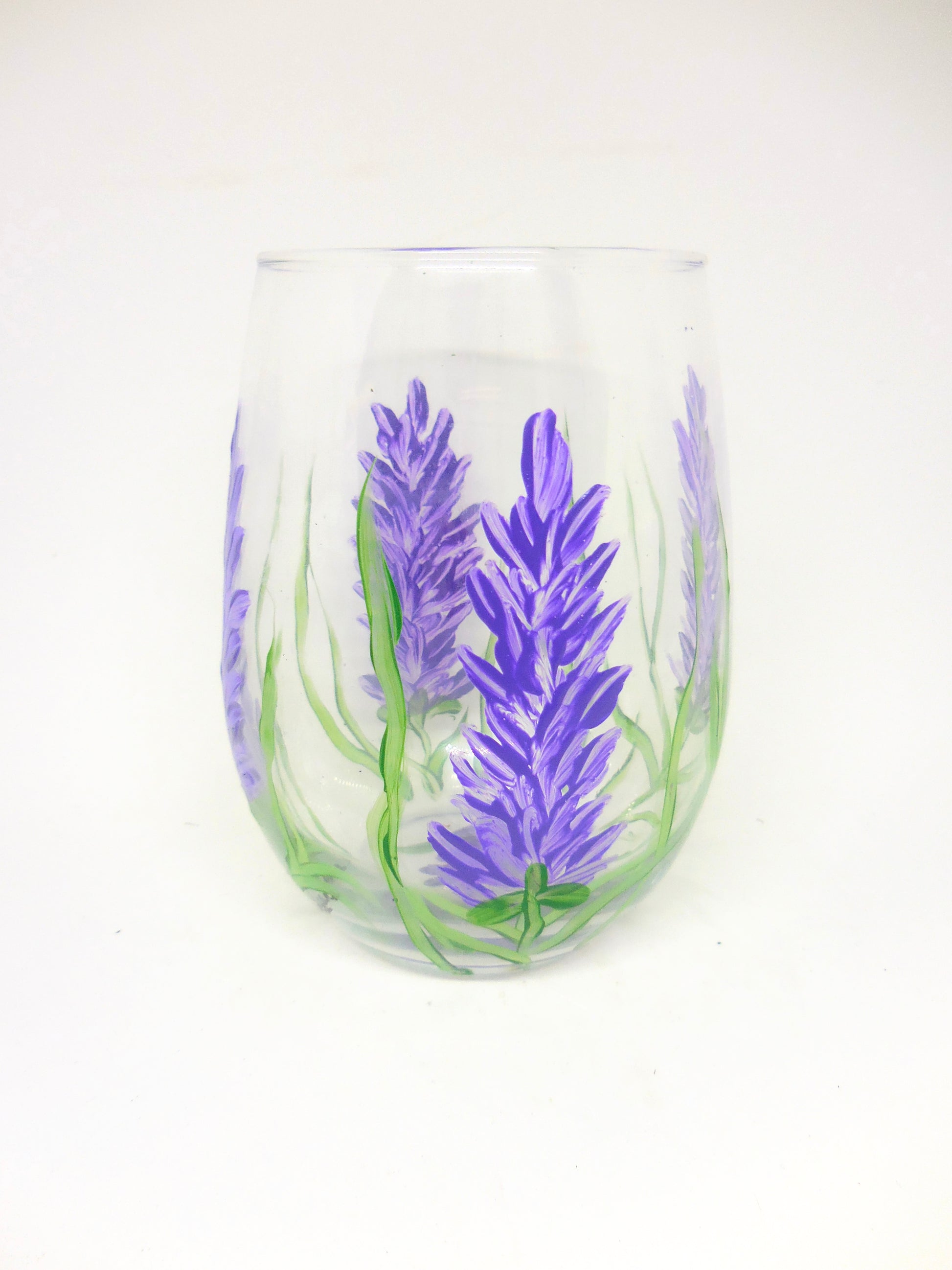 Enjoy your favorite wines with a touch of botanical elegance using our Lavender Stemless Wine Glass. Hand-painted with delicate lavender flowers, this glass brings a serene and refreshing vibe to your wine experience. Perfect for both casual and special occasions, it combines graceful floral artistry with modern functionality, making each sip a peaceful retreat.