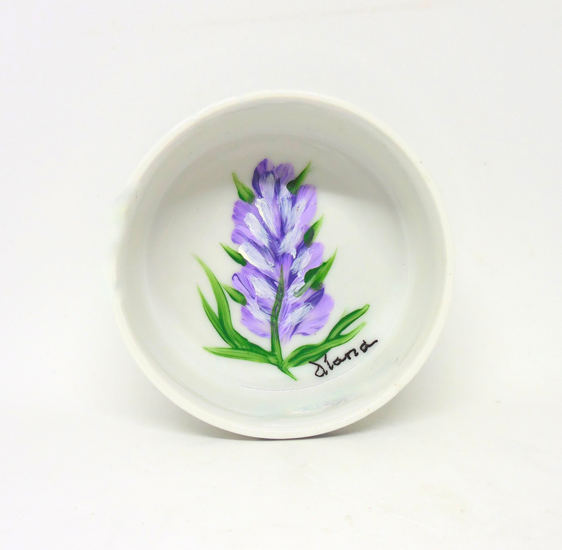 Keep your small treasures in style with our Lavender Trinket Dish. Hand-painted with soft lavender blossoms, this dish adds a touch of elegance and tranquility to your space. Perfect for holding jewelry, keys, or other small items, it combines delicate floral artistry with practical functionality, making it a charming addition to any dresser or vanity.