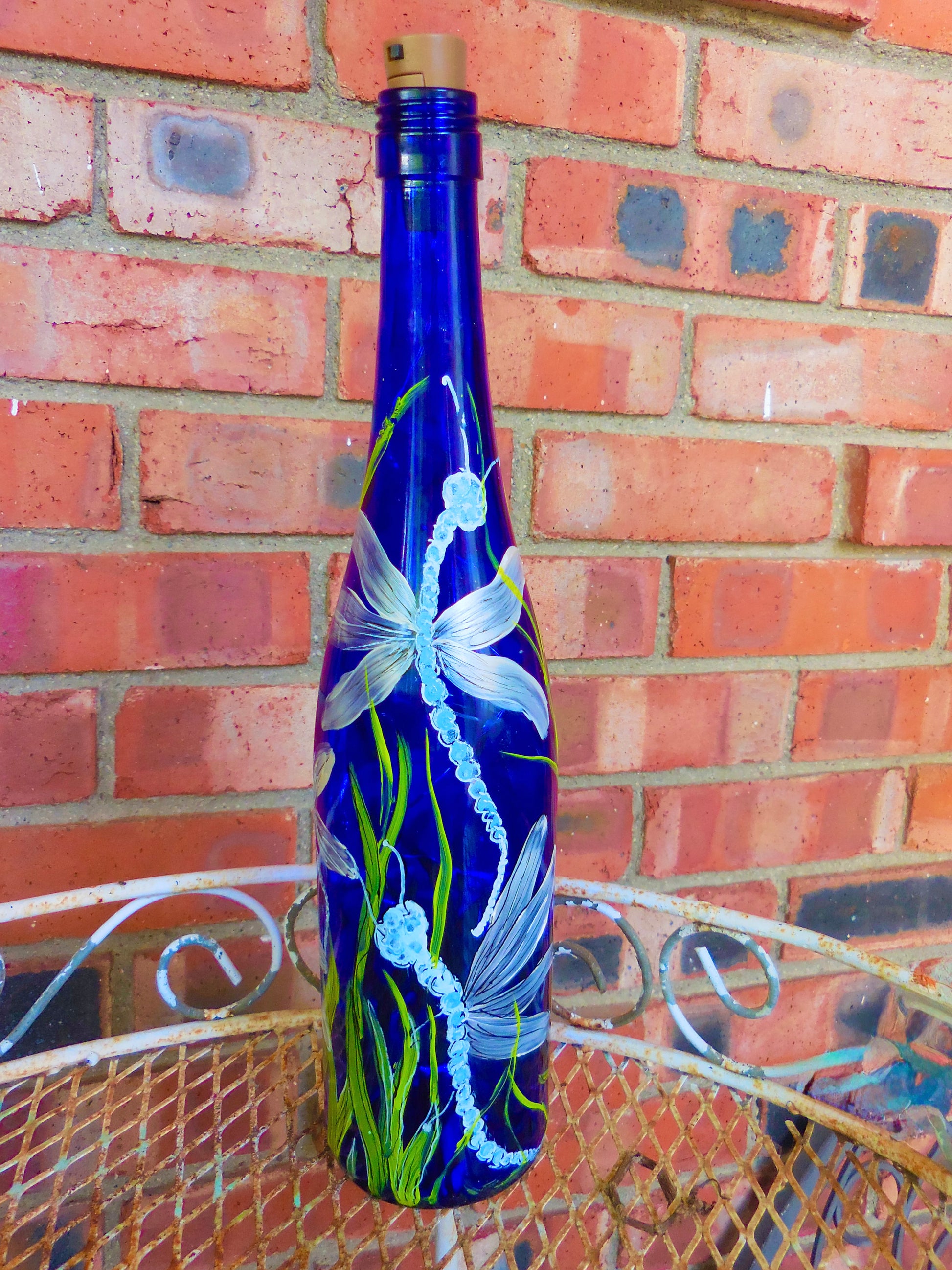 LIMITED EDITION: Cobalt Blue Wine Bottle With Dragonflies