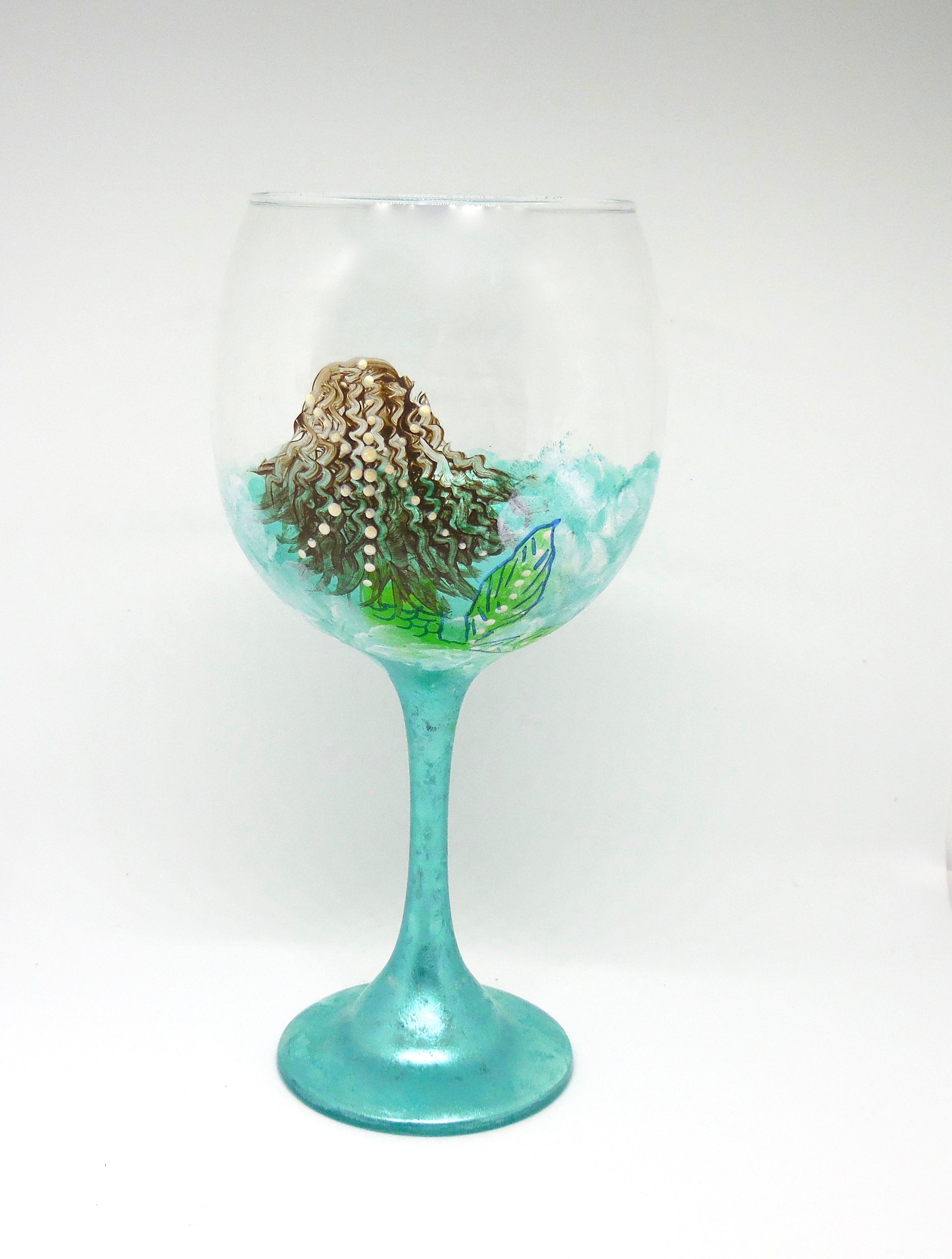 Sip your favorite vintage in style with this Mermaid Wine Glass, featuring a captivating hand-painted mermaid design. Each glass is adorned with intricate details, capturing the whimsy and elegance of the sea. Perfect for adding a touch of enchantment to your gatherings or enjoying a serene evening, this wine glass is a delightful blend of artistry and functionality.