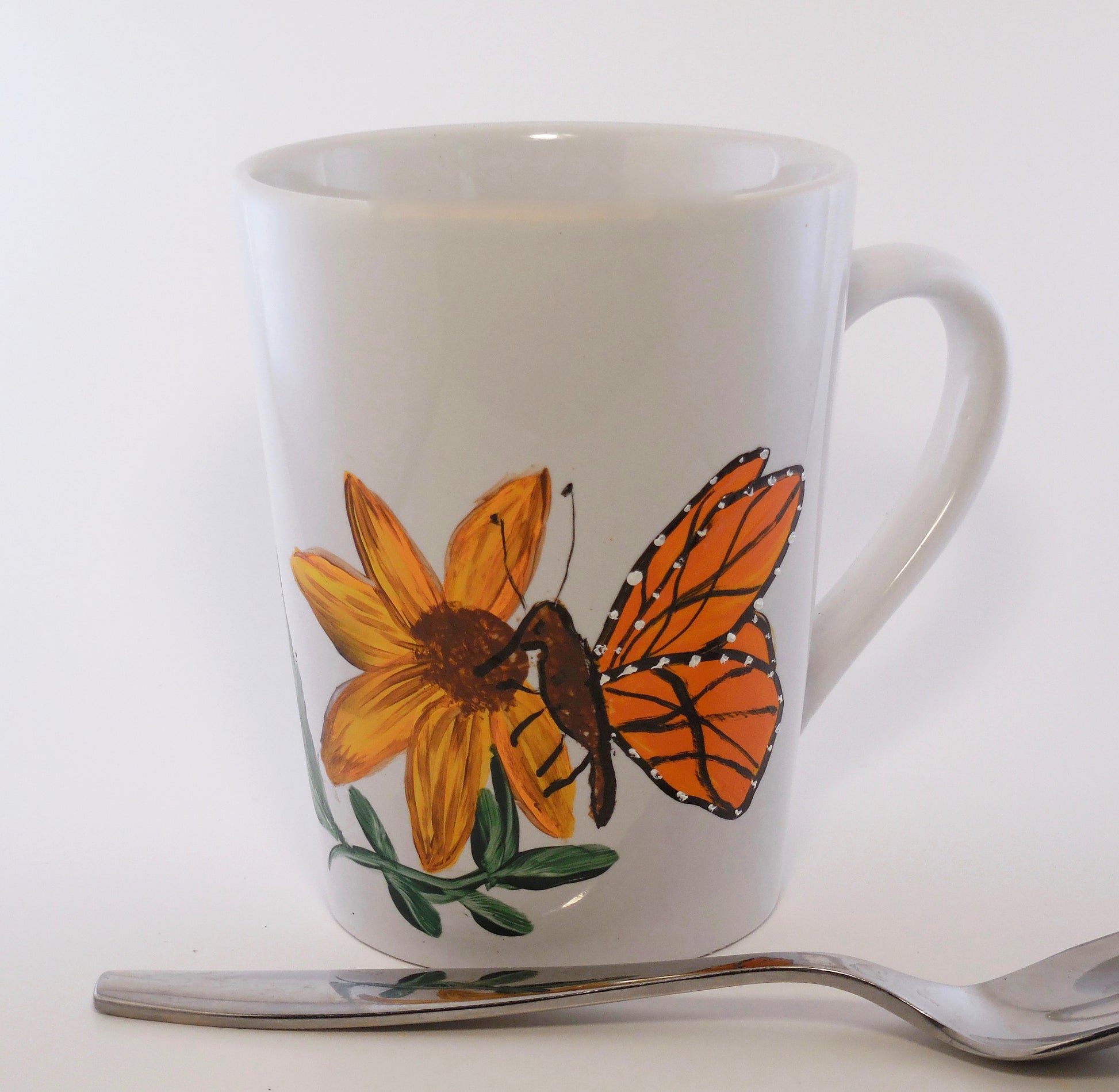 Start your day with a touch of nature’s beauty using this Monarch Butterfly Coffee Mug. Featuring a stunning hand-painted design of a monarch butterfly with its vibrant orange and black wings, this mug brings a bit of the outdoors to your morning routine. The detailed artwork captures the grace and elegance of this iconic butterfly, creating a lovely visual contrast against the mug’s background. Perfect for sipping coffee, tea, or any hot beverage, this mug is both dishwasher and microwave safe, ensuring it’s as practical as it is beautiful. Enjoy a peaceful moment with every sip!