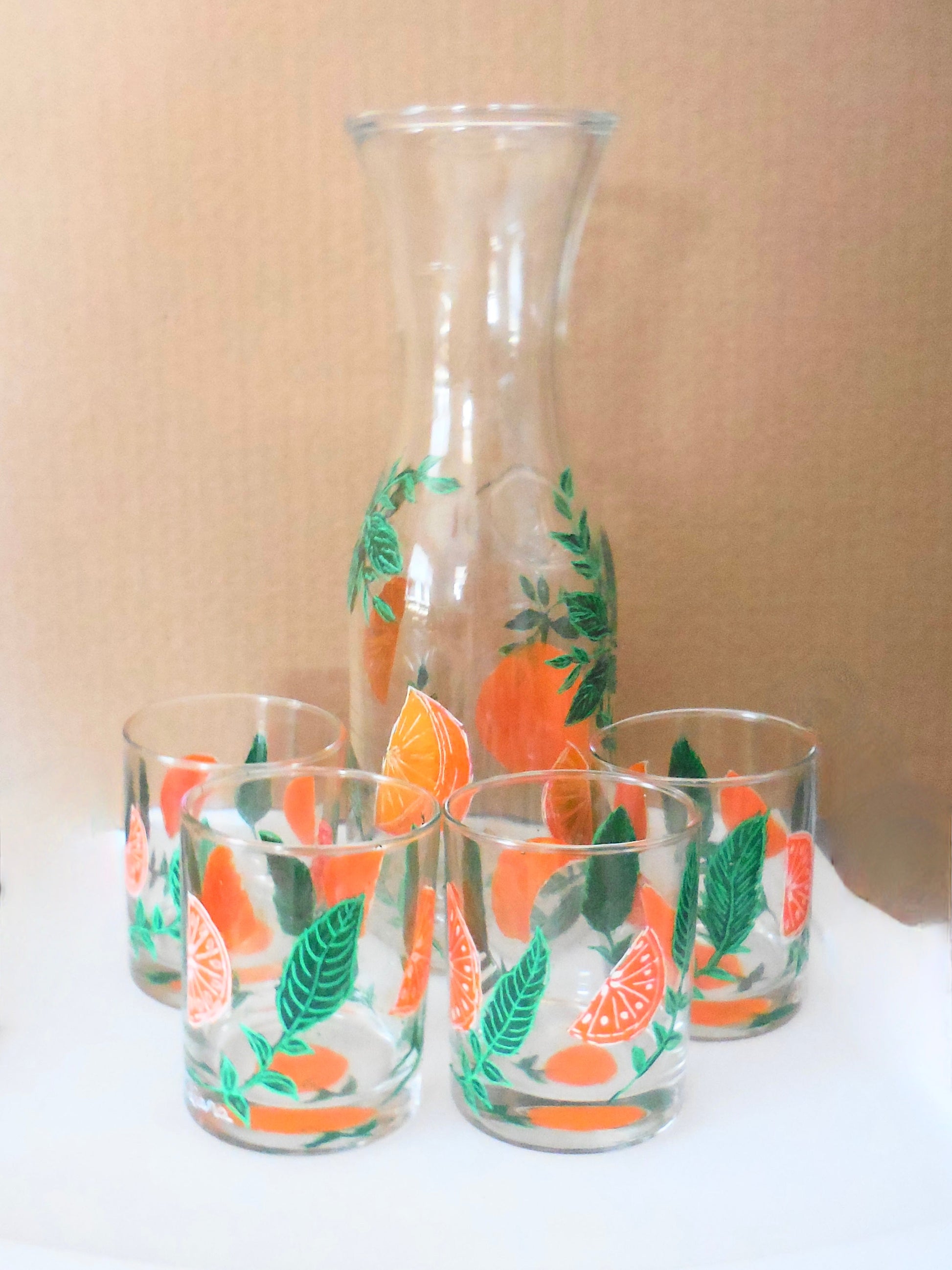 Orange Juice Carafe and 4 Glasses