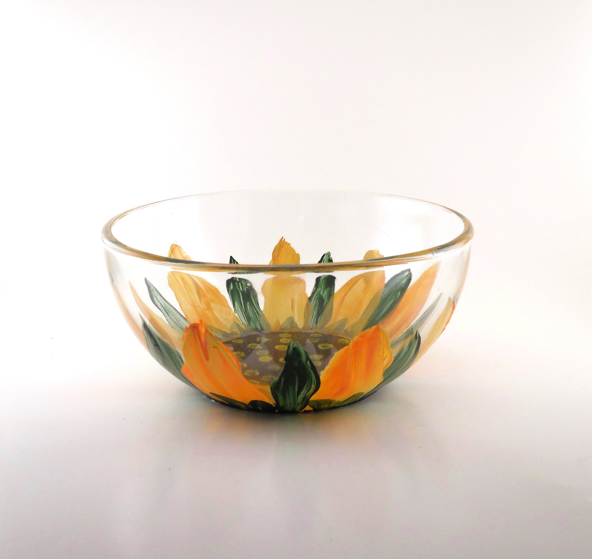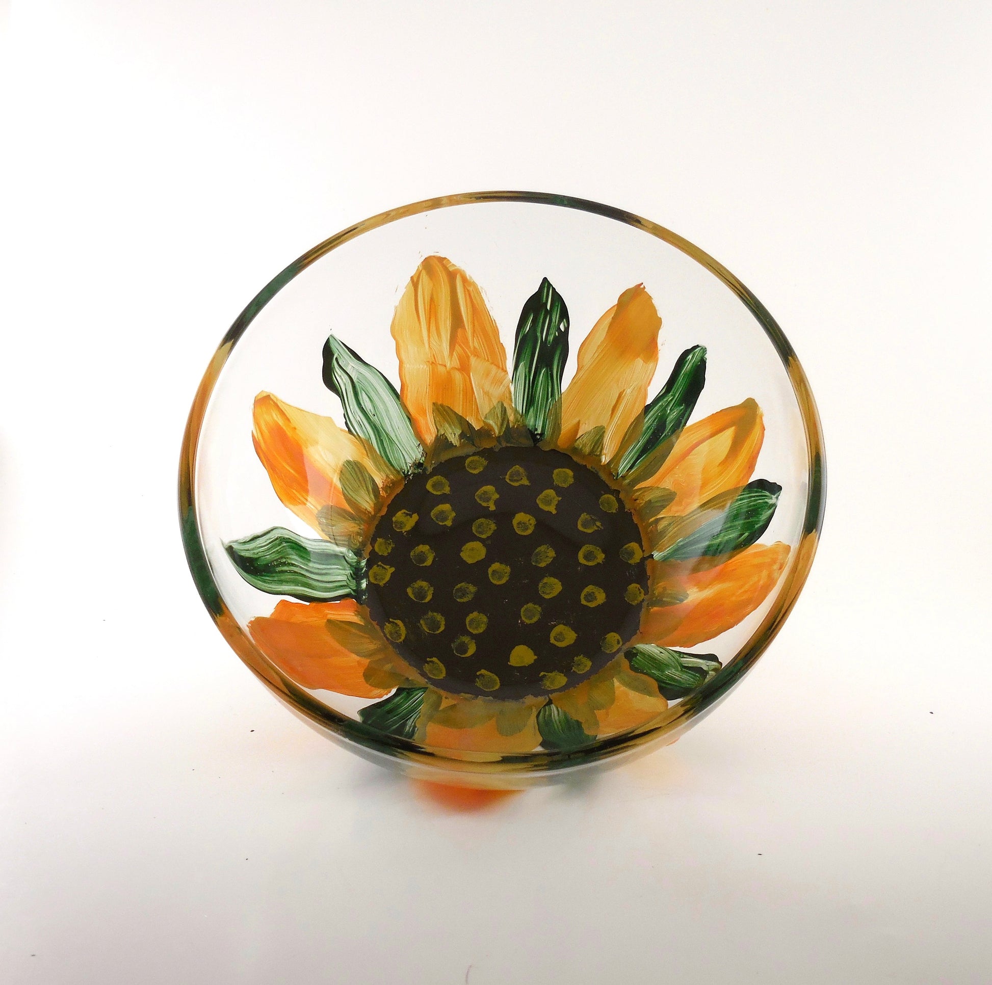 Brighten up your space with the cheerful charm of our Sunflower Glass Bowl. Featuring a vibrant sunflower design, this bowl captures the essence of sunny days and blooming gardens. Its clear glass construction allows the vivid colors and intricate details of the sunflower to shine through, making it a standout piece for any occasion. Ideal for serving salads, fruits, or as a decorative centerpiece, this bowl adds a touch of warmth and nature's beauty to your home. Embrace the joy of sunflowers with this delightful and versatile glass bowl.