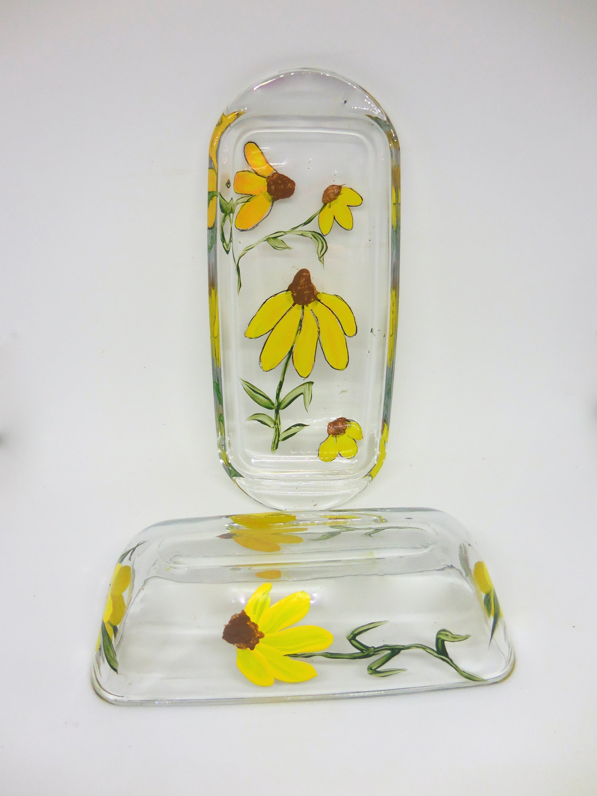 Bring a touch of brightness to your dining table with our Sunflower Glass Butter Dish. Adorned with a charming sunflower design, this dish combines practical functionality with cheerful aesthetics. The clear glass lets the vibrant sunflower details take center stage, making it a delightful addition to your kitchen. Perfect for keeping your butter fresh and accessible, this dish is both a practical and stylish choice. Elevate your meal presentation with the sunny appeal of this beautiful sunflower butter dish.