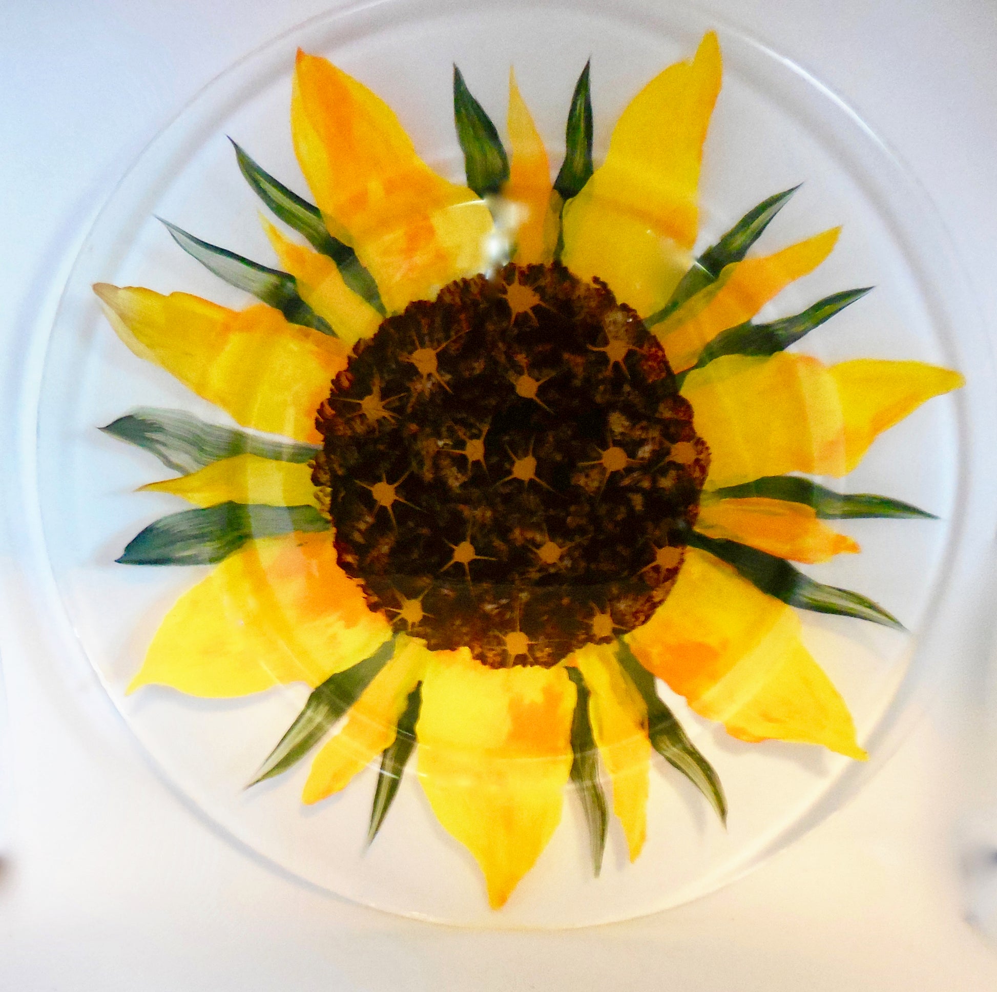 Brighten your table setting with our Sunflower Glass Plate. Featuring a stunning sunflower design, this plate captures the beauty of the bloom with its vibrant colors and intricate details. Ideal for serving your favorite dishes or as a decorative piece, its elegant design adds a touch of sunshine to any meal. Made with high-quality glass, it offers both durability and style. Whether used for special occasions or everyday dining, the Sunflower Glass Plate is a charming addition to your tableware collection.