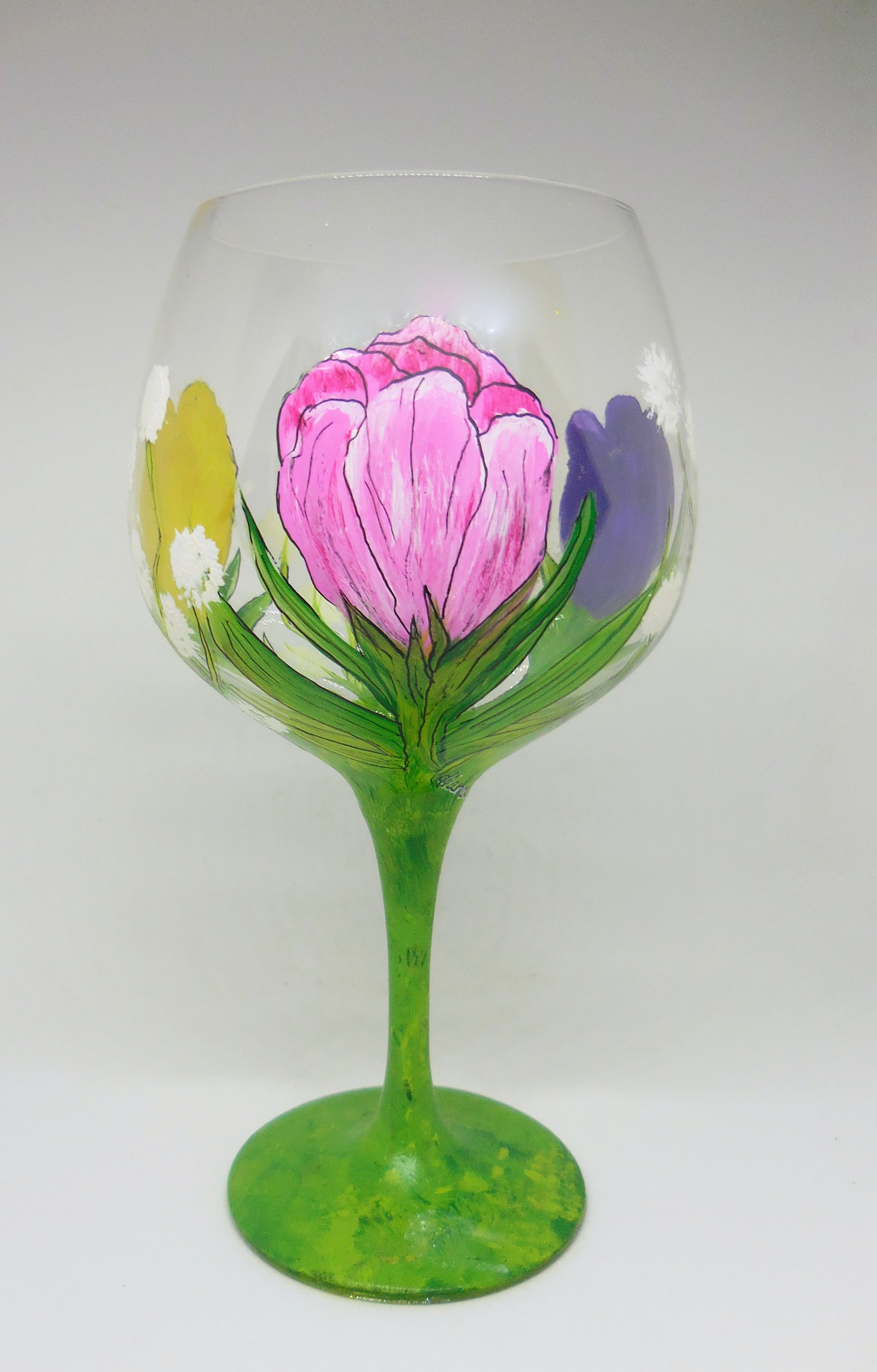 Celebrate the charm of spring with our Tulips Wine Glass. Featuring a delicate, hand-painted tulip design, this glass brings a fresh and floral touch to your wine experience. Whether you're toasting a special occasion or enjoying a quiet evening, the vibrant tulip motif adds a splash of color and elegance to any setting. Crafted with care for both beauty and durability, this wine glass is a lovely addition to your collection and a thoughtful gift for flower enthusiasts and wine lovers alike.