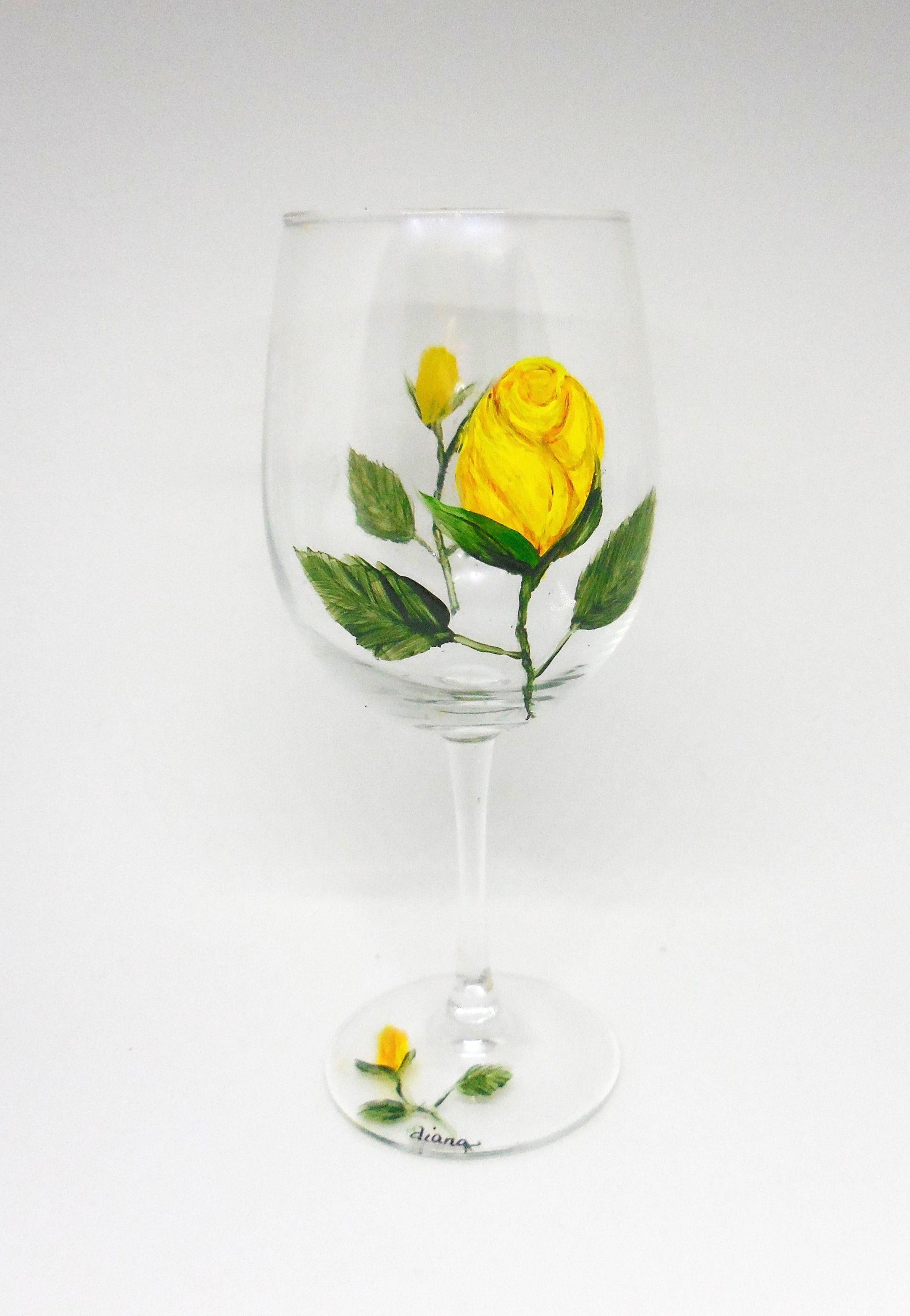 Sip in elegance with this beautifully crafted Yellow Rose Wine Glass. Featuring a hand-painted yellow rose that wraps around the bowl, this glass adds a touch of sophistication to your wine-drinking experience. The delicate petals and vibrant green leaves create a striking contrast against the clear glass, making it a perfect choice for special occasions or everyday use. Enjoy your favorite wine with a floral flourish that brings a little sunshine to your table setting.